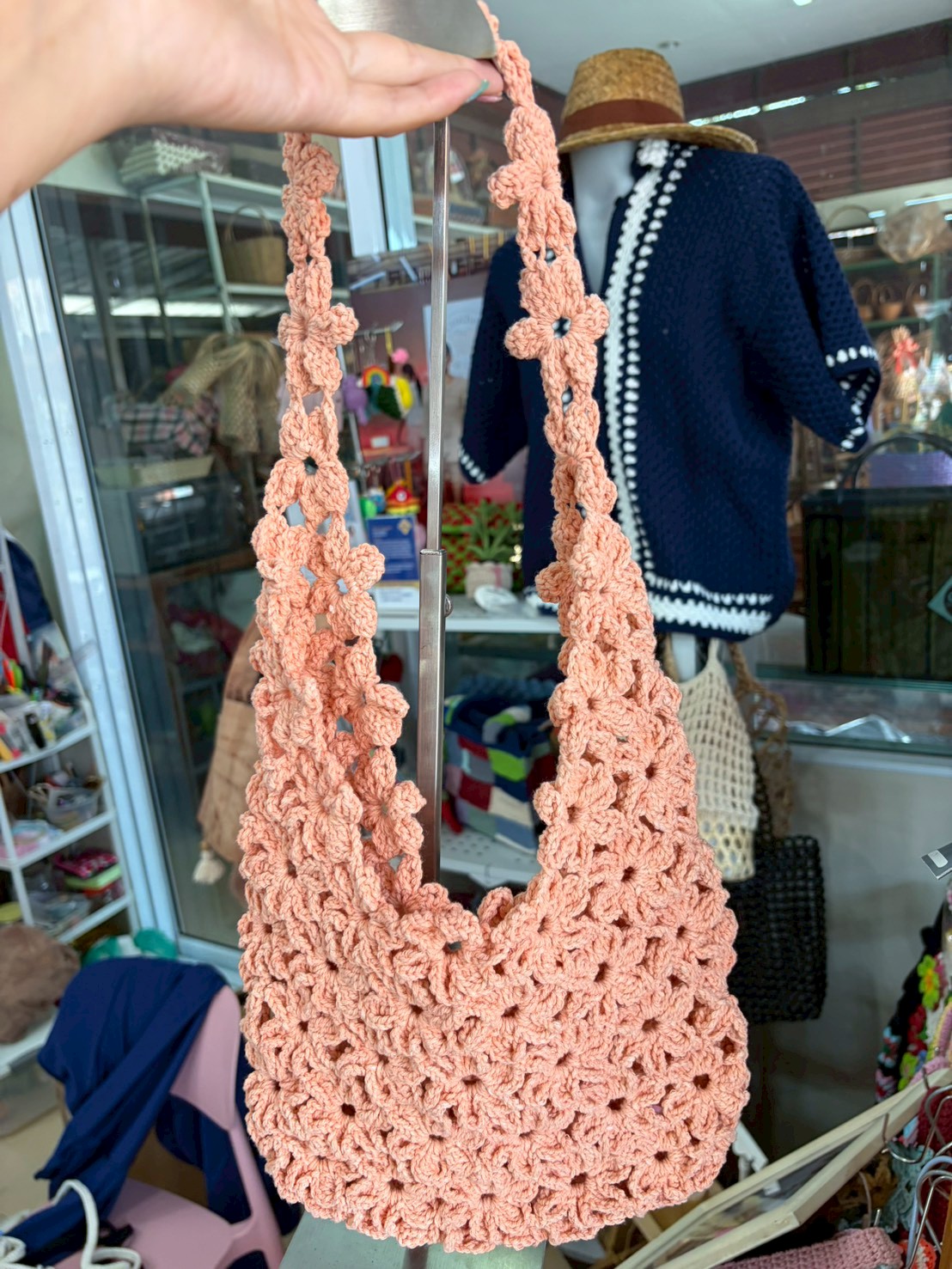 กระเป๋าถักดอกไม้